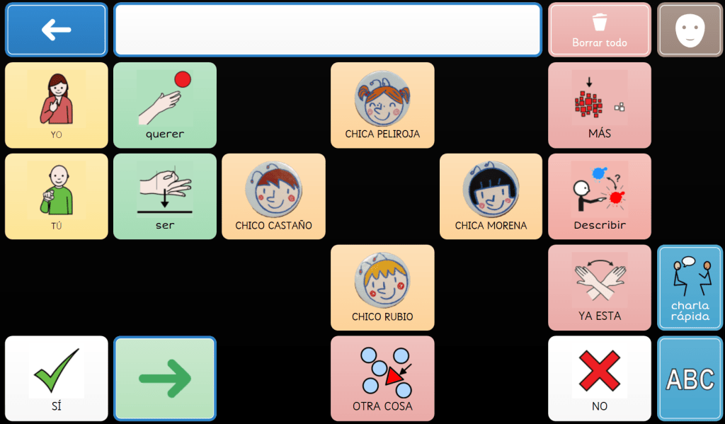 ¡Importante! No hay una única manera de adaptar la cuadrícula del comunicador y siempre es importante respetar la estructura típica del comunicador de usuario concreto así como el estilo de pictogramas que suele usar. En los Online Grids os dejamos un ejemplo de cuadrícula para el Grid3, nombrada AESR_Oruga_de_colores, que podéis buscar, descargar y usar de modelo, personalizándolo según las necesidades de vuestra hija o hijo e integrándolo en su SAAC.