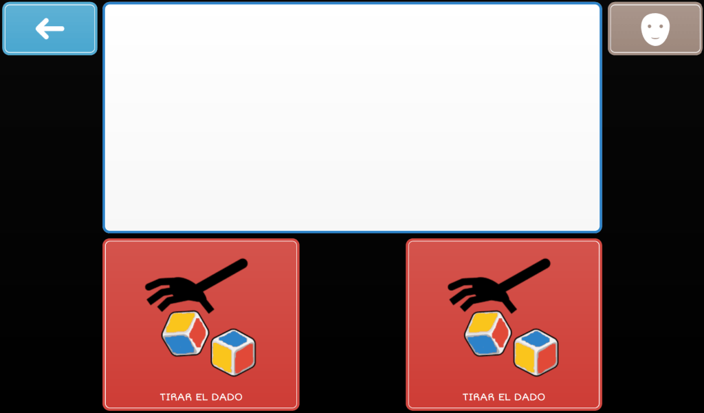 Se puede comprar uno (enlace) o hacer uno en casa con un poco de imaginación y creatividad. El juego contiene un tablero, fichas de caracoles y dos dados de colores. Como en los juegos anteriores, vamos a utilizar tablero y fichas en formato físico, proporcionando ayuda adecuada a las jugadoras Rett, mientras que los dados tendremos digitalizados en el dispositivo de comunicación, para que puedan lanzarlos independientemente.